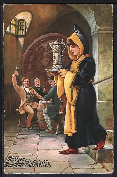 Künstler-AK München, Münchner Kindl im Münchner Ratskeller