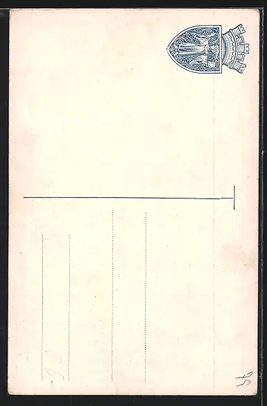 Personenbezogene Daten auf der Rückseite der Karte wurden durch blauen Textmarker unkenntlich gemacht. Die blauen Stellen sind auf die Vorderseite durchgeweicht und wirken sich negativ auf das Postkartenfoto aus