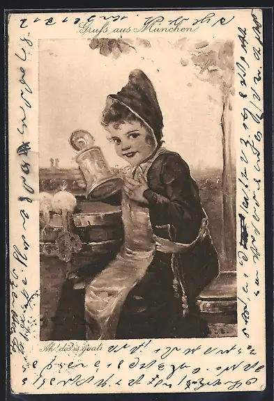 Künstler-AK München, Münchner Kindl mit Bierkrug