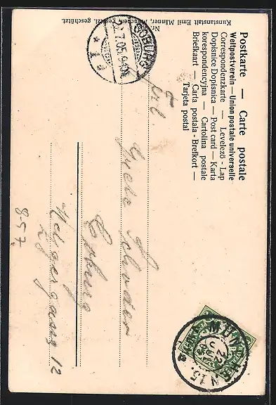 alte Ansichtskarte, gelaufen 1905, Eckknick li. unten, guter Zustand