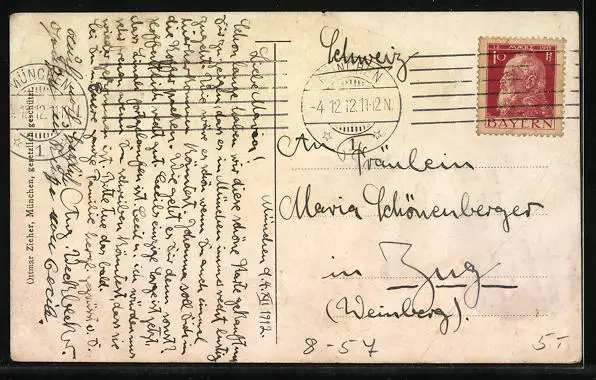 alte Ansichtskarte, gelaufen 1912, Bugspur li. unten, guter Zustand