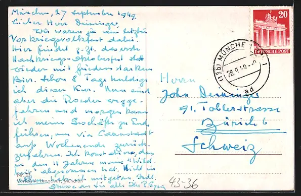 alte Ansichtskarte, gelaufen 1949, guter Zustand