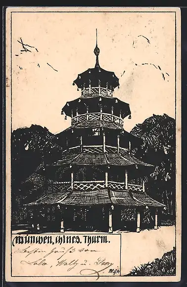 Künstler-AK München-Schwabing, Chinesischer Turm