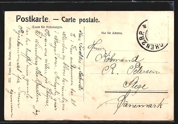 alte Ansichtskarte, gelaufen, Briefmarke entfernt, guter Zustand