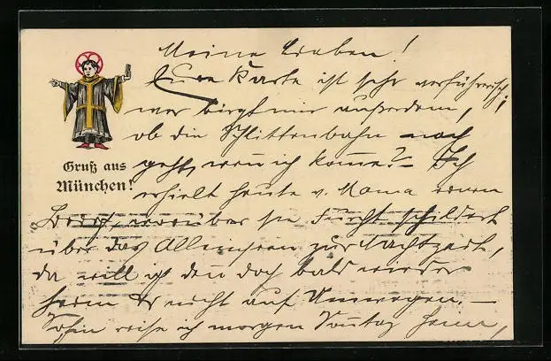 Künstler-AK Münchner Kindl in Kutte mit Eidbuch