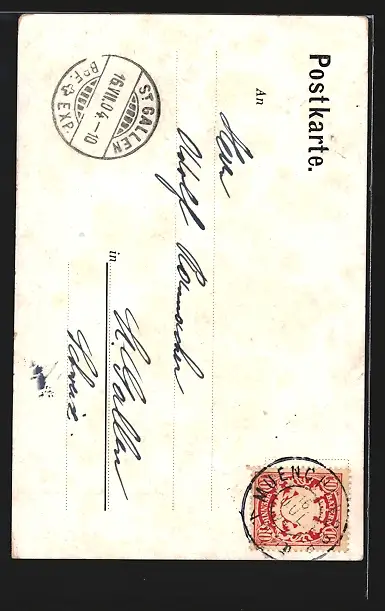 alte Ansichtskarte, gelaufen 1904, Eckknick li. unten u. re. oben, guter Zustand