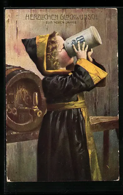 Künstler-AK Münchner Kindl trinkt eine Mass Bier