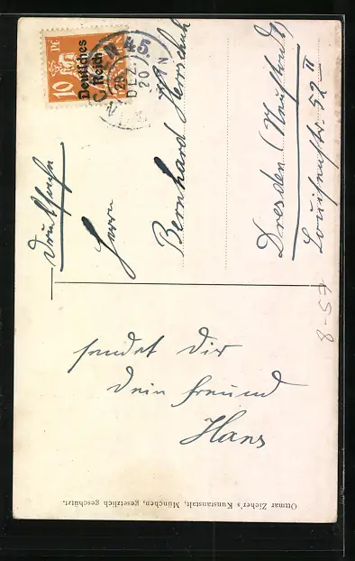 alte Ansichtskarte, gelaufen 1920, Abriebspuren Rand, guter Zustand