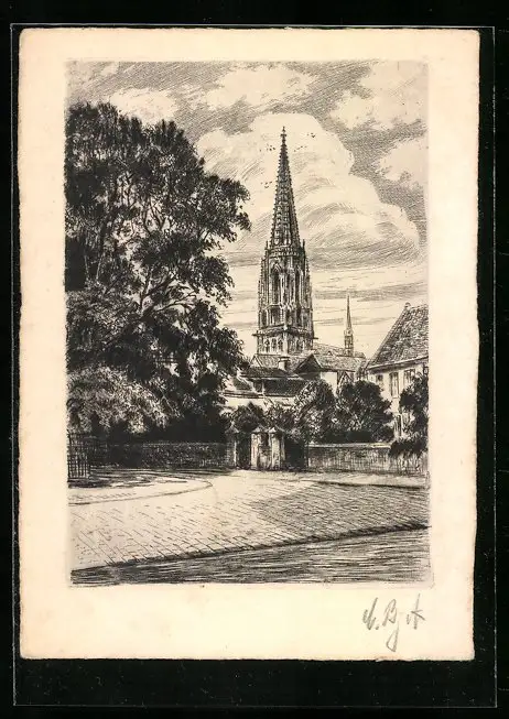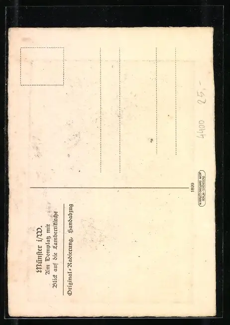 Künstler-AK Münster i.W., Am Domplatz mit Blick auf die Lambertikirche