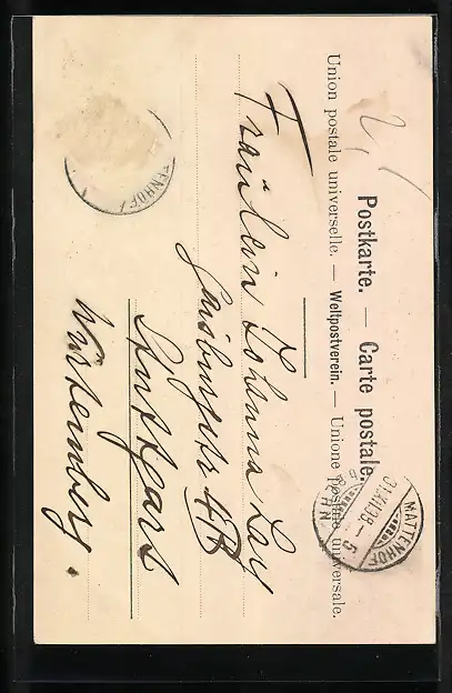 alte Ansichtskarte, gelaufen 1898, Briefmarke entfernt, guter Zustand