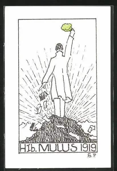 Künstler-AK Mulus 1919 - Student grüsst mit Mütze, studentische Szene