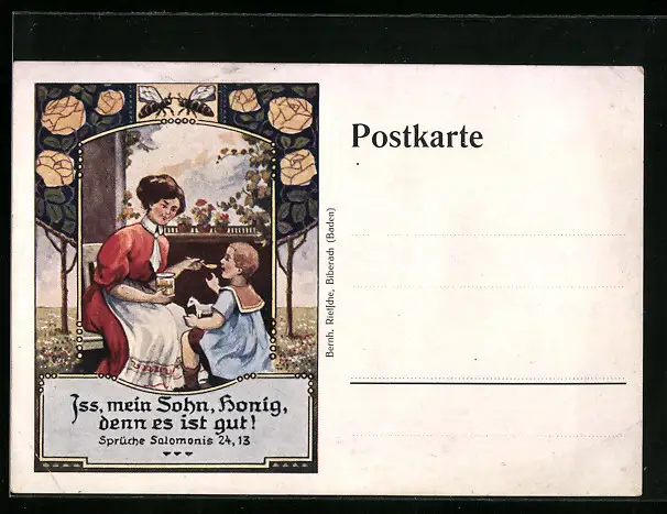 Künstler-AK Mutter gibt ihrem Sohn Honig