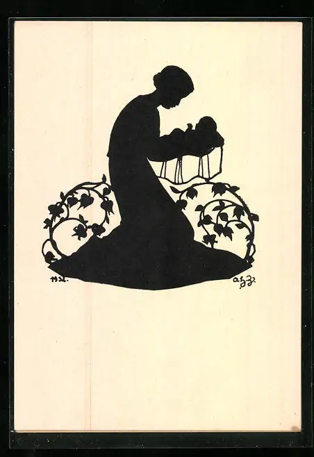 Künstler-AK Mutter hält ihr Kind im Arm, Scherenschnitt