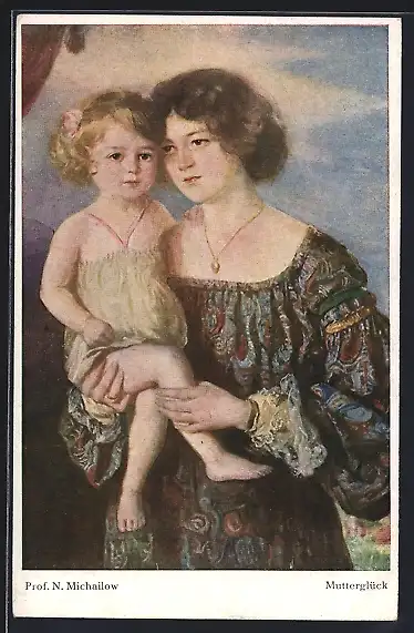 Künstler-AK Mutterglück, Mutter trägt ihre Tochter auf dem Arm
