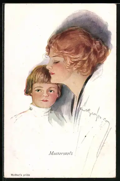 Künstler-AK Mutterstolz, Mutter und Kind im Porträt