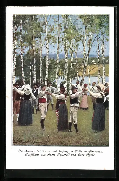 Künstler-AK Nääs, Die Spieler bei Tanz und Gesang