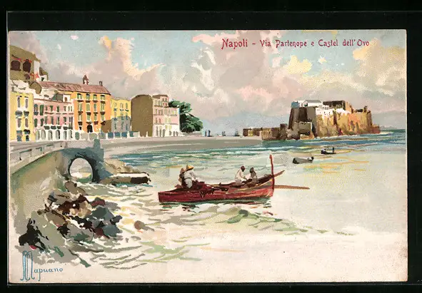 Künstler-AK Napoli, Via Partenope e Castel dell'Ovo