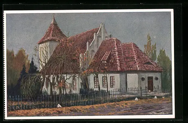 Künstler-AK Narzym, Partie an der Pfarrkirche