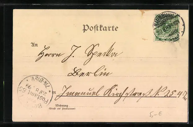 alte Ansichtskarte, gelaufen 1899, Stempelspur, guter Zustand