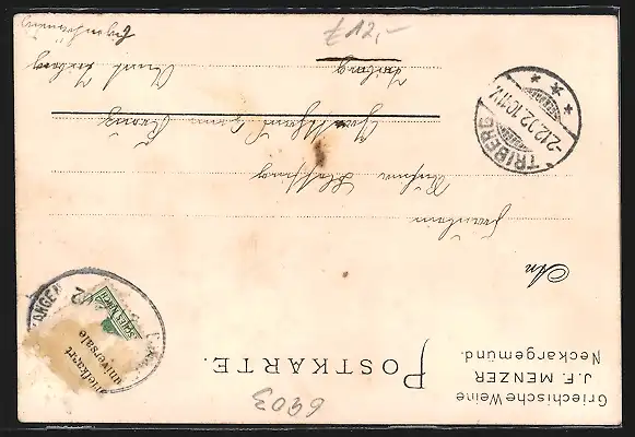 alte Ansichtskarte, gelaufen 1902, Briefmarke entfernt, guter Zustand
