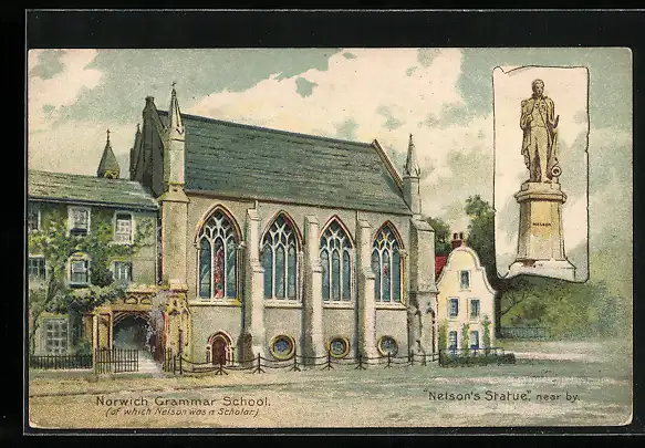 Künstler-AK Nelson, Norwich Grammar School, Nelson`s Statue