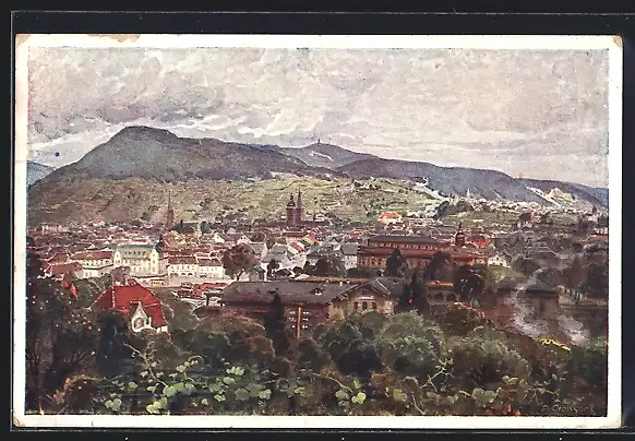 Künstler-AK Neustadt a. Haardt, Totalansicht von einem Weinberg aus