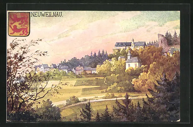 Künstler-AK Neuweilnau i. T., Ortsansicht