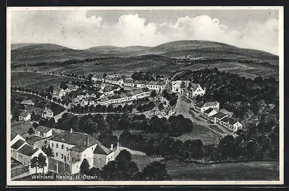 Künstler-AK Nexing, Ortsansicht aus der Vogelschau