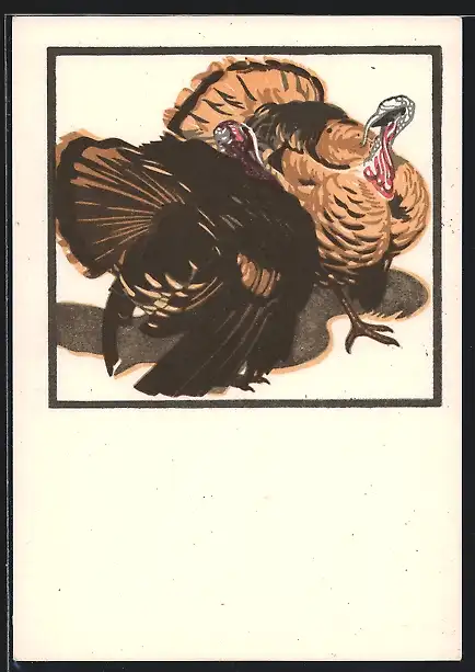 Künstler-AK Norbertine Bresslern-Roth: Truthahn beim Kampf