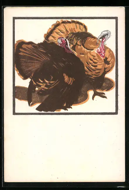 Künstler-AK Norbertine Bresslern-Roth: balzende Truthähne