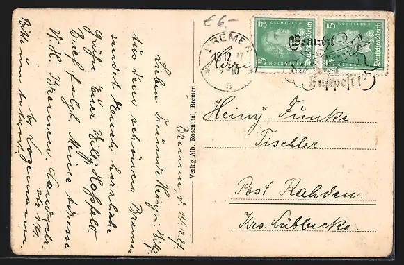 alte Ansichtskarte, gelaufen 1927, guter Zustand
