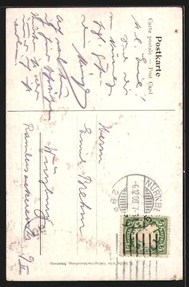 alte Ansichtskarte, gelaufen 1908, Stempelspur, guter Zustand