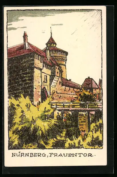 Künstler-AK Nürnberg, Blick auf das Frauentor