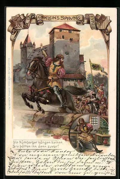 Künstler-AK Nürnberg, Eppeleins Sprung, Im Gefängnis