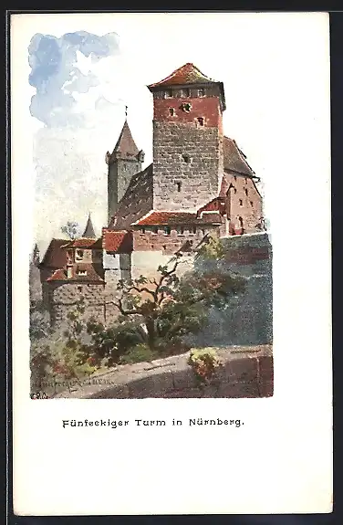 Künstler-AK Nürnberg, Fünfeckiger Turm