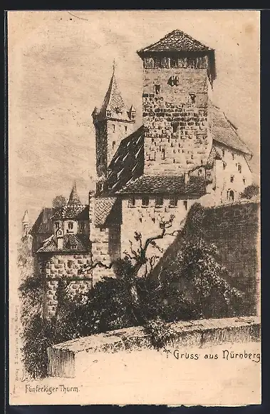 Künstler-AK Nürnberg, Fünfeckiger Turm