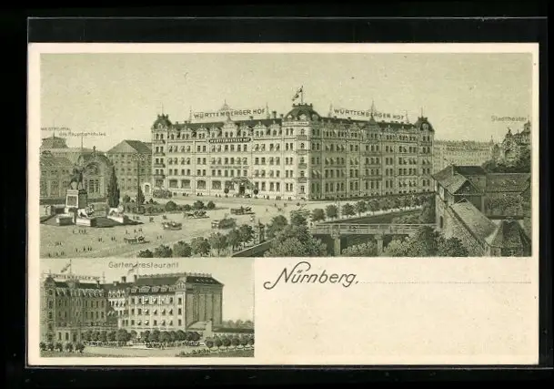 Künstler-AK Nürnberg, Hotel Württemberger Hof
