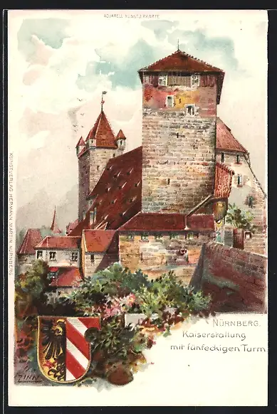 Künstler-AK Nürnberg, Kaiserstallung mit fünfeckigen Turm