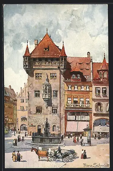 Künstler-AK Nürnberg, Nassauerhaus aus der Vogelschau