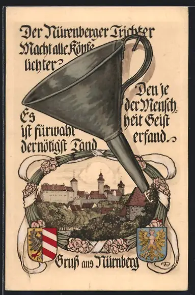 Künstler-AK Nürnberg, Nürnberger Trichter, Ortspartie