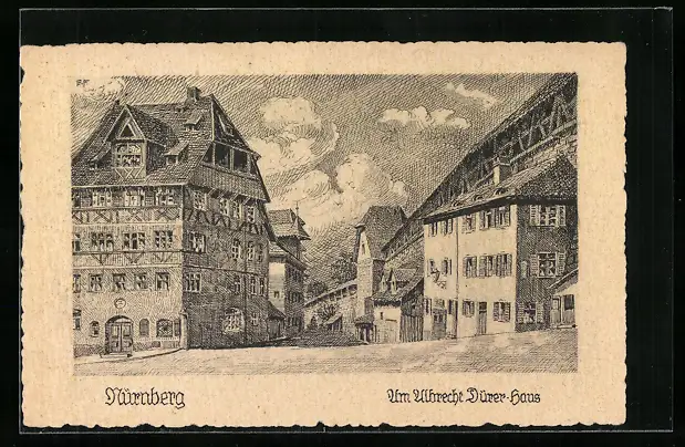 Künstler-AK Nürnberg, am Albrecht-Dürer Haus