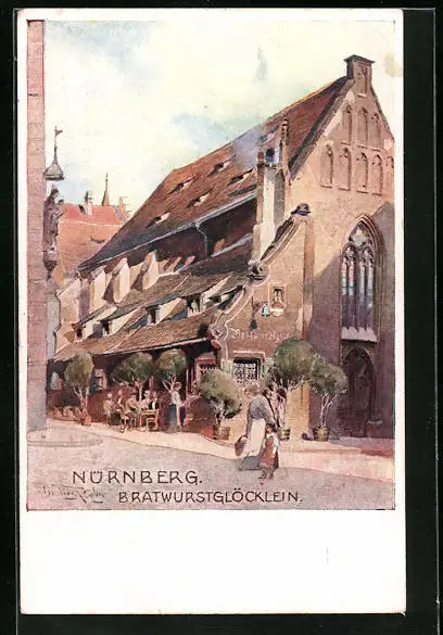 Künstler-AK Nürnberg, am Bratwurstglöcklein