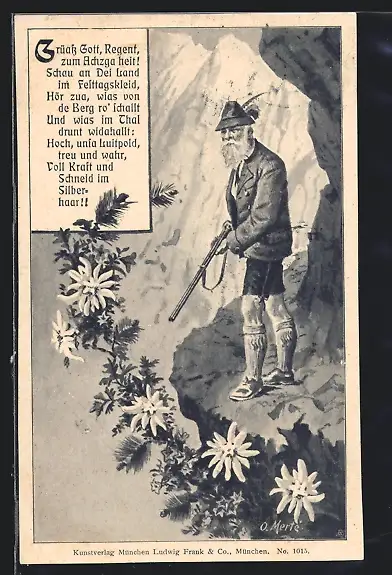 Künstler-AK O. Merte: Jäger im Hochgebirge, Edelweiss