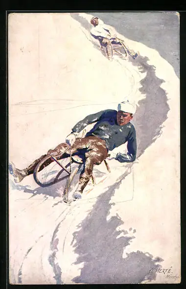 Künstler-AK O. Merte: Rodler bei rasanter Abfahrt