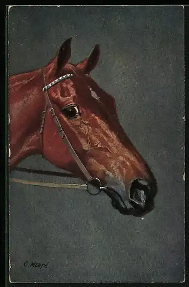 Künstler-AK O. Merte: Rotbraunes Pferd mit Zaumzeug