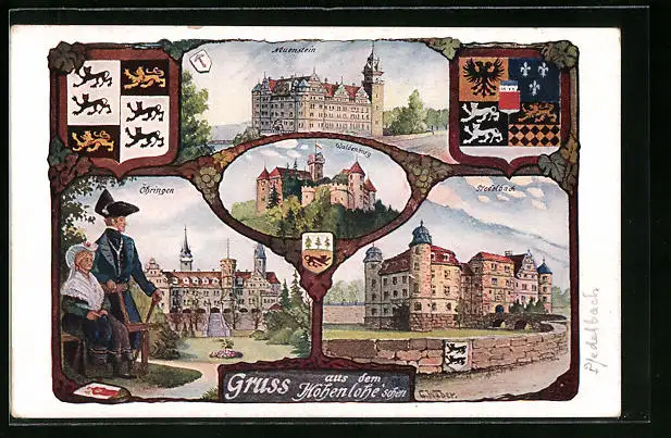 Künstler-AK Öhringen, Schloss, Neuenstein, Waldenburg, Hohenlohe