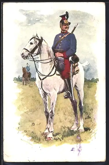 Künstler-AK Österreichischer Kavallerist zu Pferde