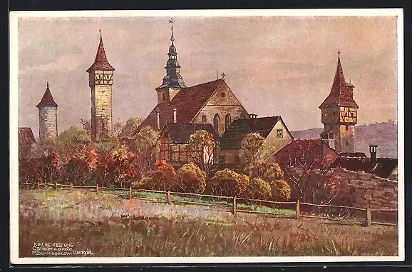 Künstler-AK Ostheim v. D. Rhön, Kirchenfestung
