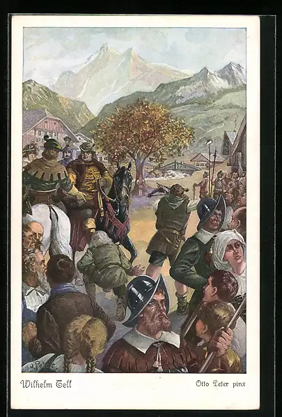 Künstler-AK Otto Peter: Wilhelm Tell, Karte Nr. 8, Tells Apfelschuss