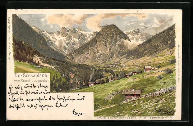 Künstler-AK Otto Strützel: Brand, Gesamtansicht mit Scesaplana